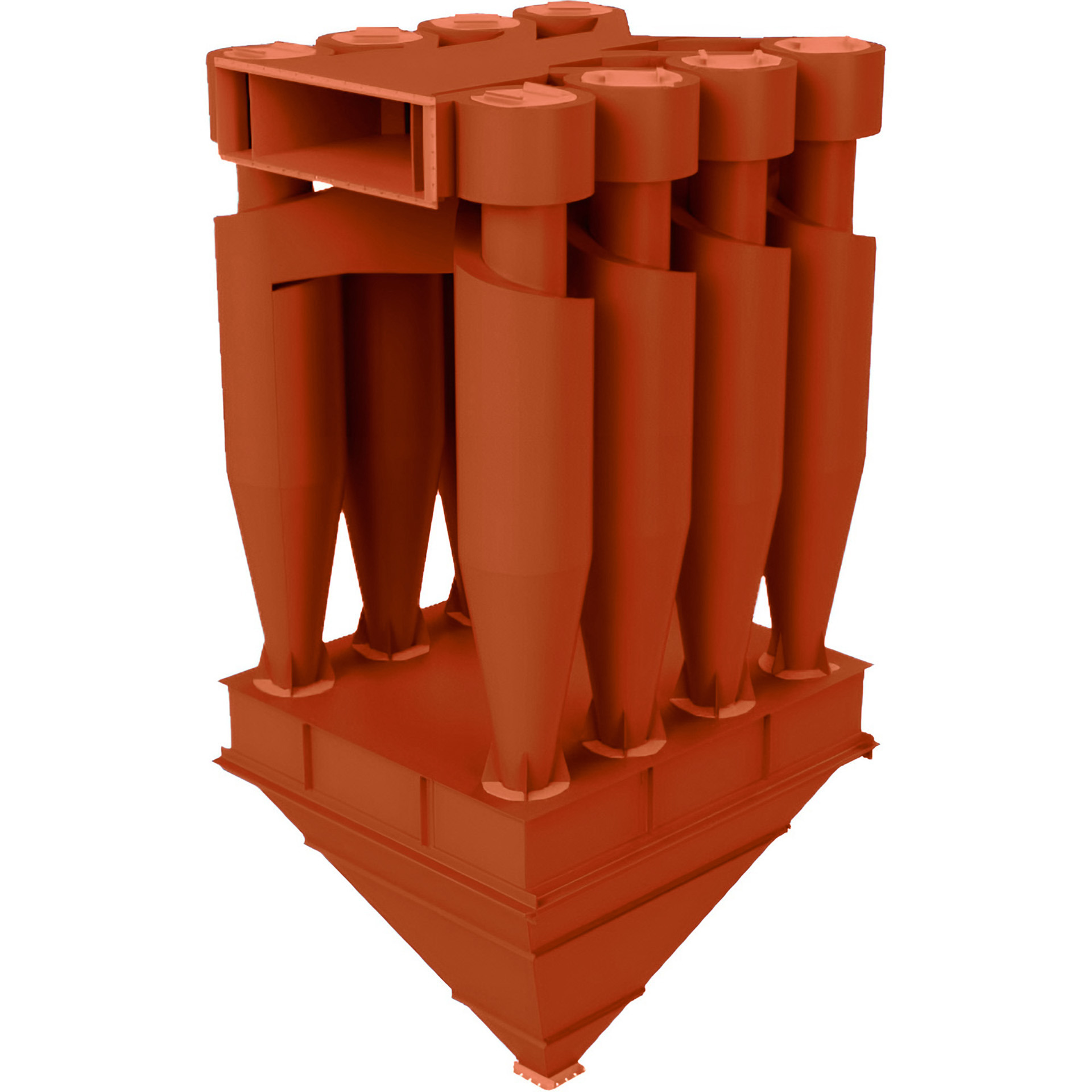 Серия ЦН-15 охватывает диаметры от 200 до 2000 мм и допускает компоновку в группы из 2, 4, 6 или 8 циклонов с параллельным подключением. Это позволяет создавать системы пылеулавливания с суммарной производительностью от нескольких сотен до десятков тысяч м³/ч.