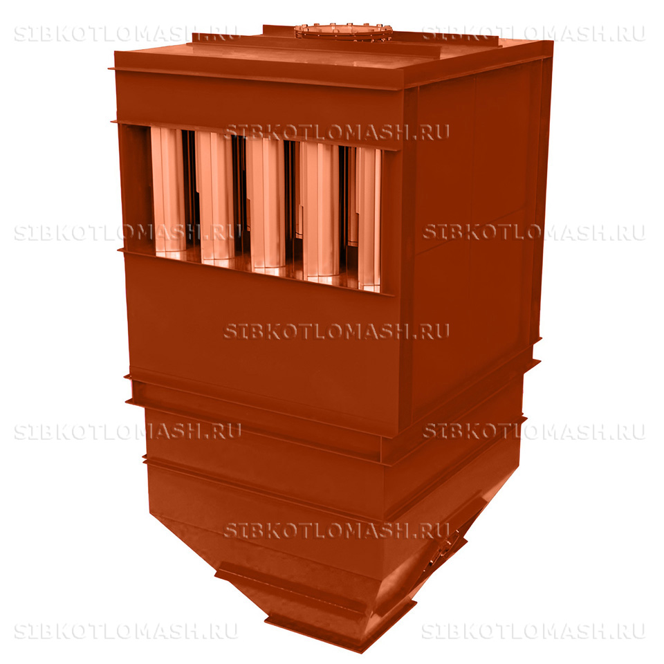 Циклонные элементы состоят из полых цилиндрических корпусов с конусной частью внизу и входными патрубками с аппаратами закручивания (полуулитками). Внутри элементов вертикально установлены выхлопные патрубки.