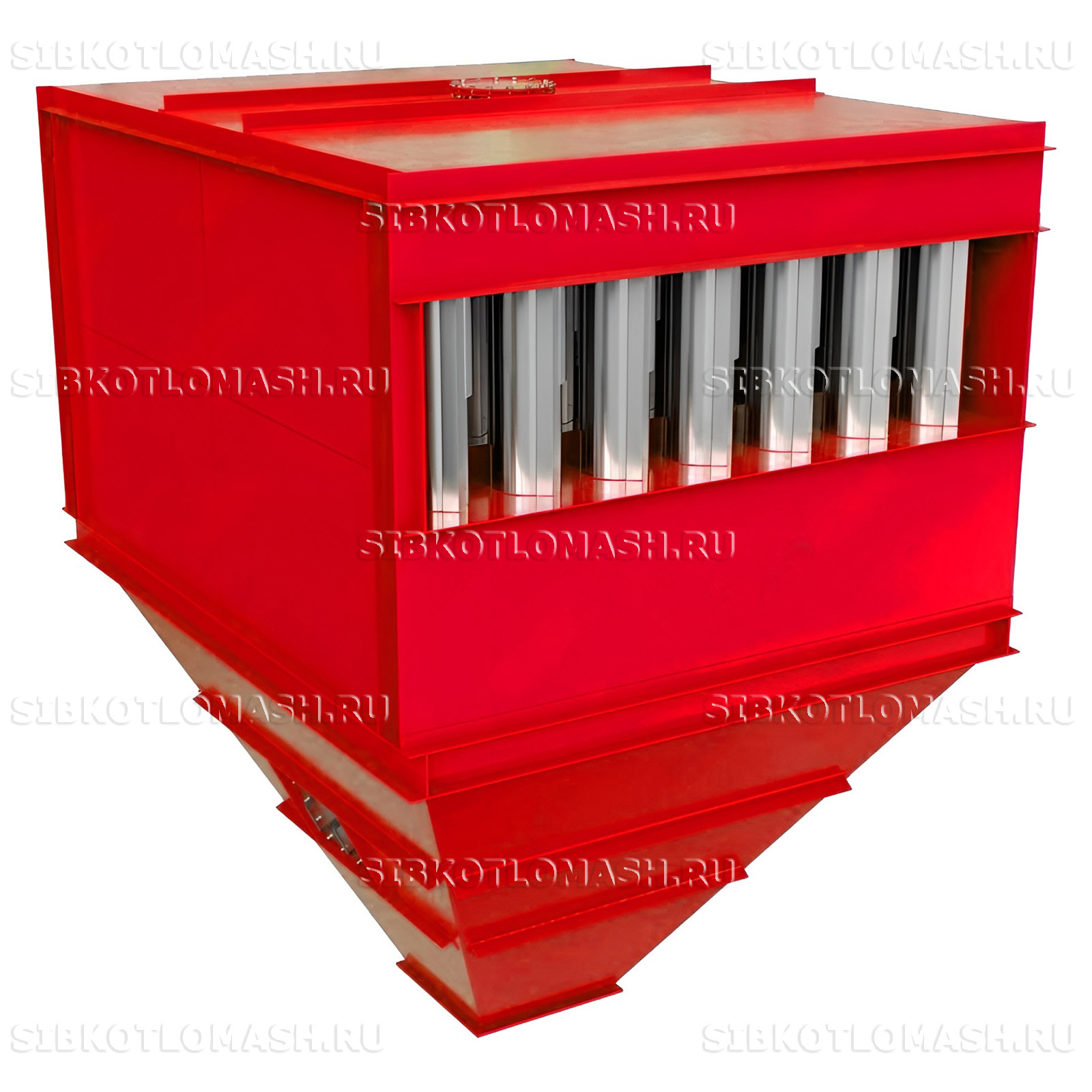 Циклонные элементы состоят из полых цилиндрических корпусов с конусной частью внизу и входными патрубками с аппаратами закручивания (полуулитками). Внутри элементов вертикально установлены выхлопные патрубки.